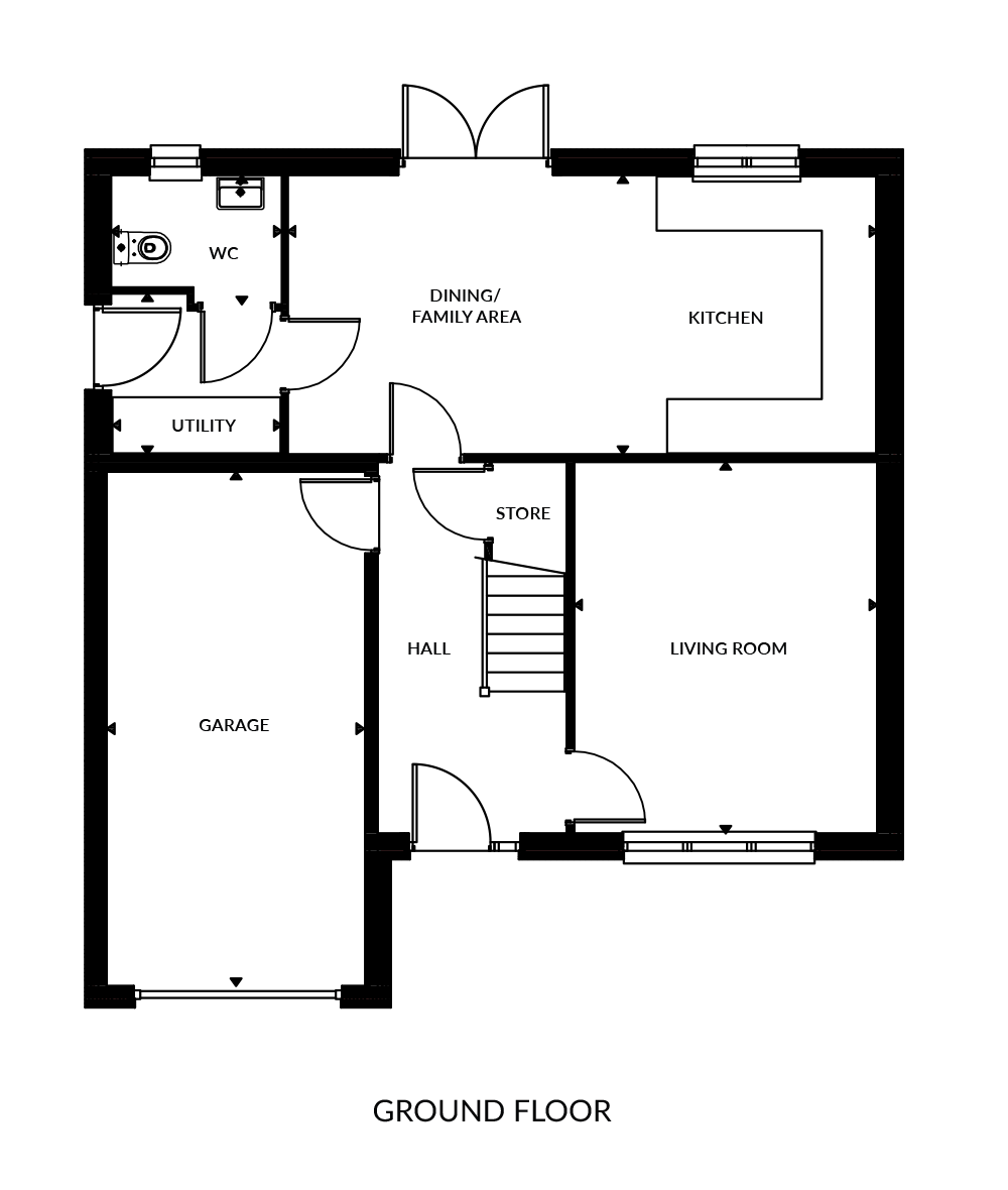 We provide you with the perfect blank canvas to personalise your new home with quality oak finish doors and bannisters and modern white satin skirtings, facings and walls.