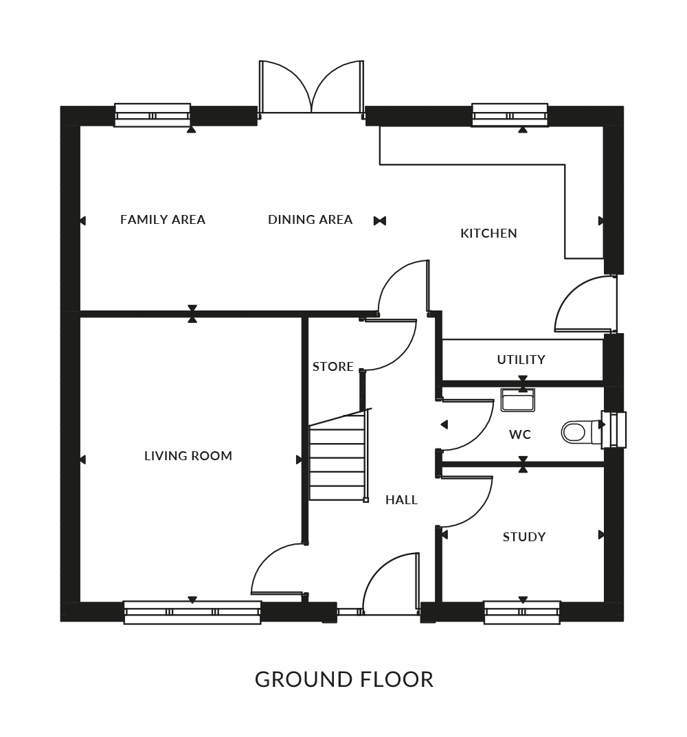 We provide you with the perfect blank canvas to personalise your new home with quality oak finish doors and bannisters and modern white satin skirtings, facings and walls.