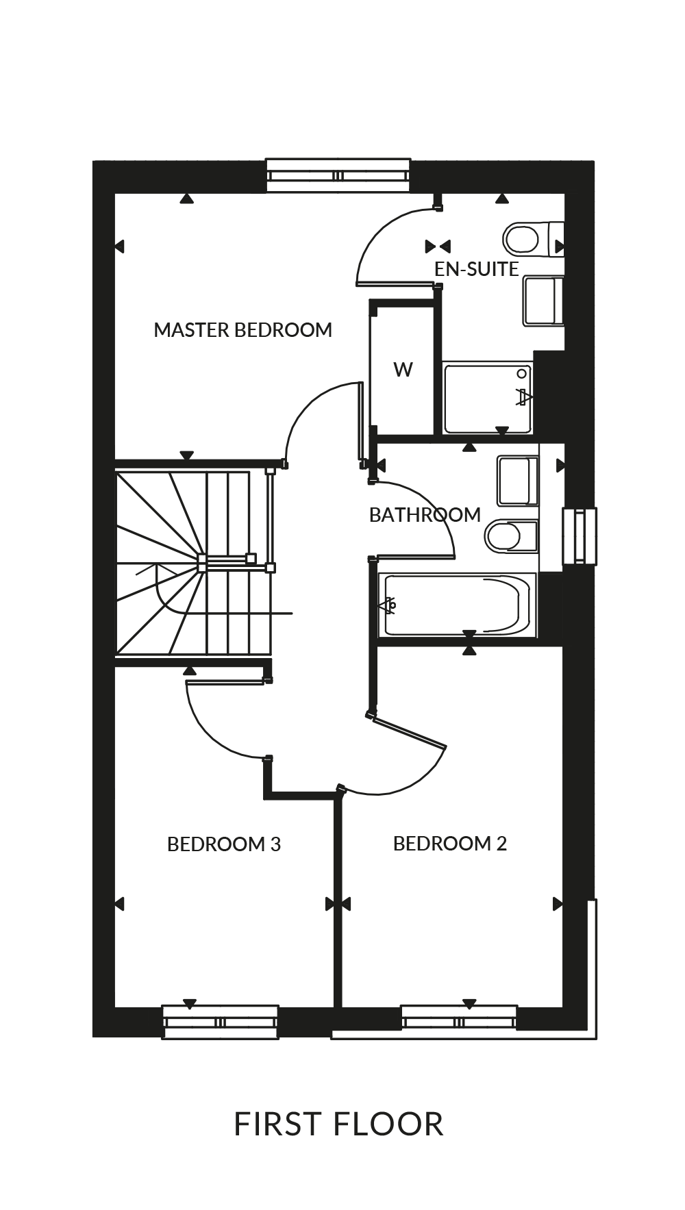The 3-bedroom Richmond, available as semi-detached or end-terraced, perfectly balances space and style. The entrance hall with storage and wc leads to both the large dining kitchen, equipped with premium appliances and extensive storage, and the separate living room with French doors to the rear garden.