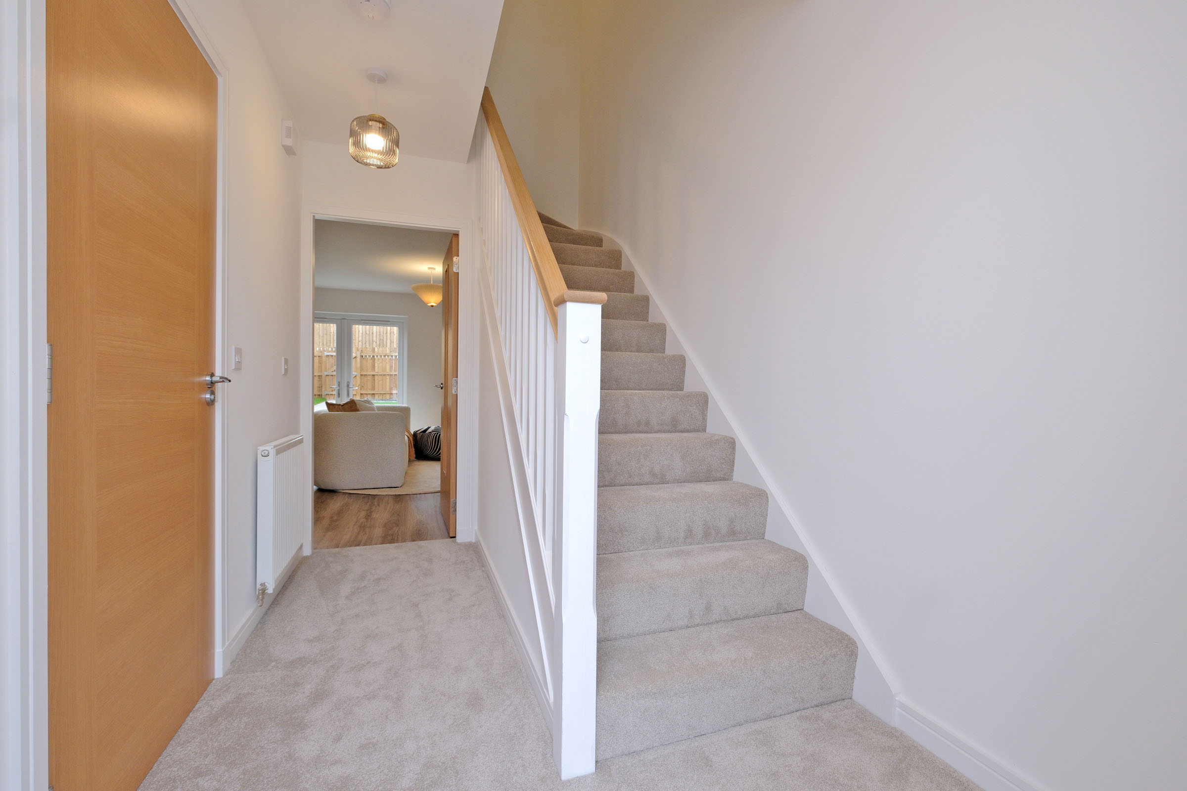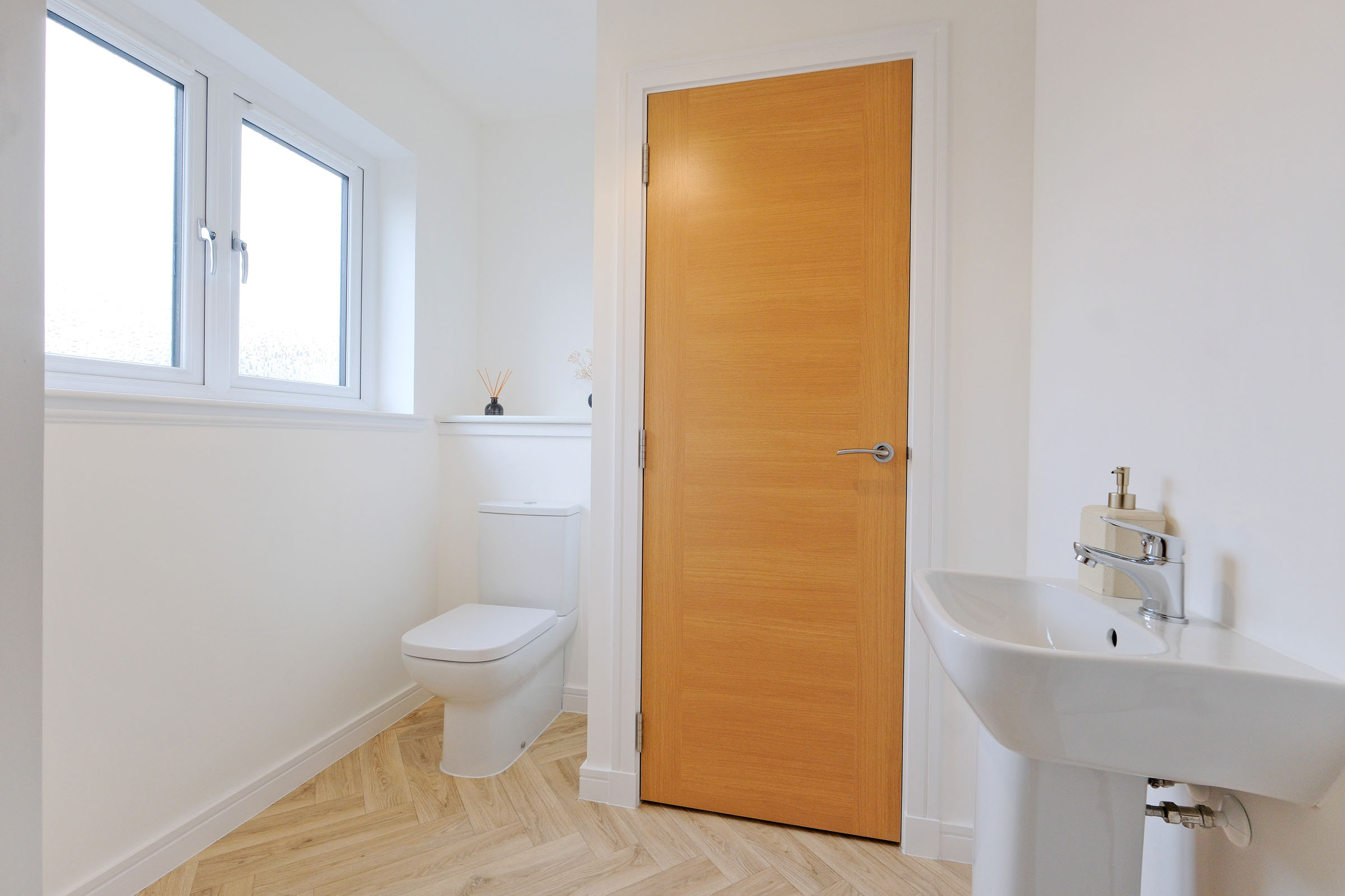 We provide you with the perfect blank canvas to personalise your new home with quality oak finish doors and bannisters and modern white satin skirtings, facings and walls.