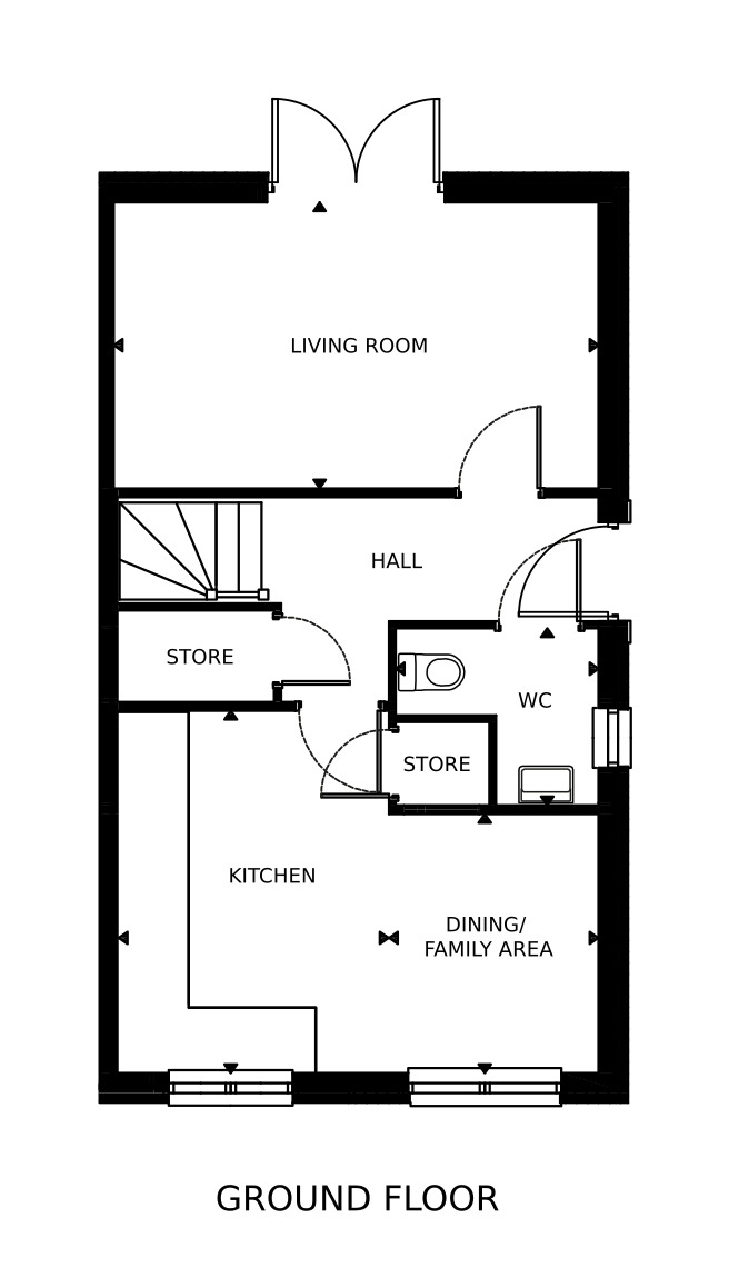 The 3-bedroom Richmond, available as semi-detached or end-terraced, perfectly balances space and style. The entrance hall with storage and wc leads to both the large dining kitchen, equipped with premium appliances and extensive storage, and the separate living room with French doors to the rear garden.