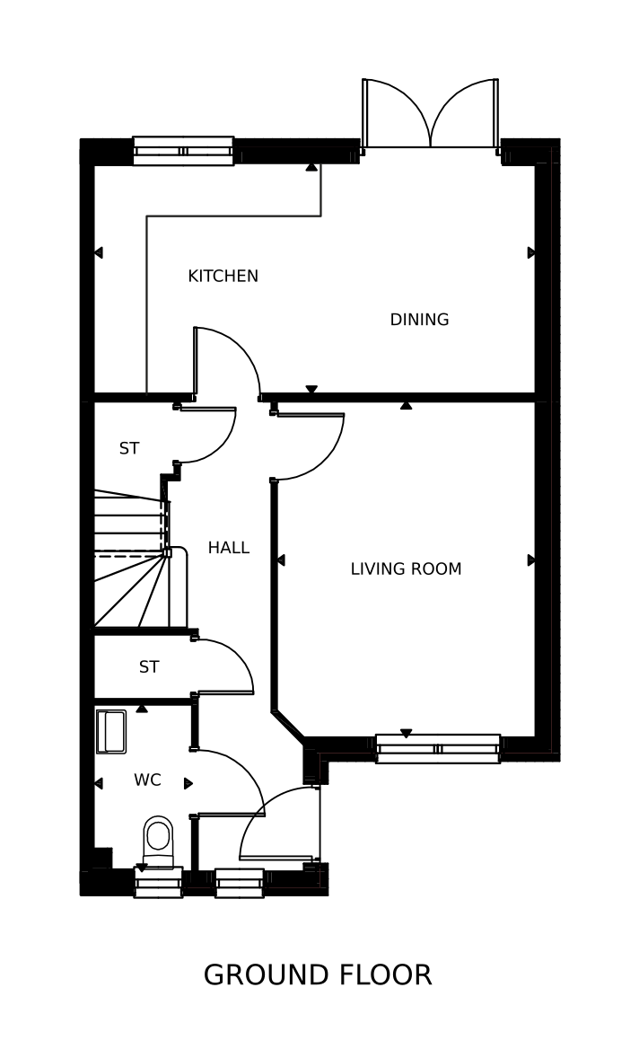 The 3-bedroom Thistle semi-detached home is an ideal choice for couples or young families. The entrance hall with storage and wc leads to the bright, open-concept dining kitchen featuring French doors leading to a private rear garden. The spacious living room is to the front of the home.