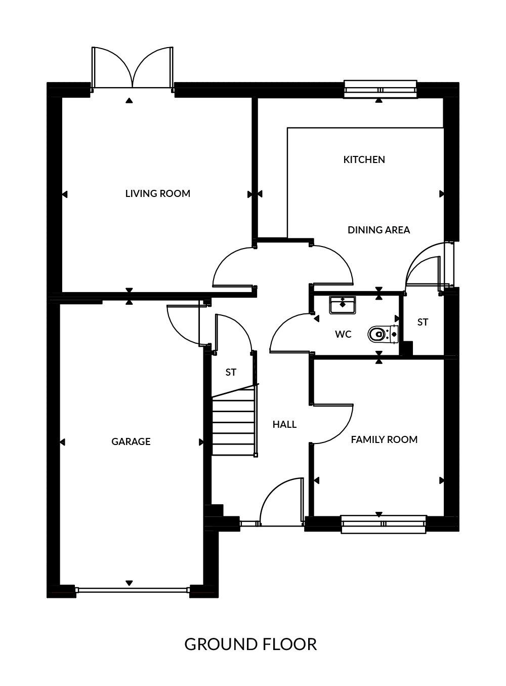 Garage 3.02m x 6.00m or 9′ 10″ x 19′ 8″First Floor