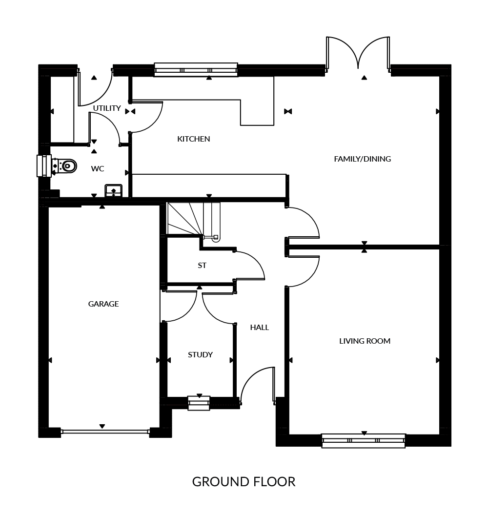 This is a beautiful home featuring an open-plan kitchen, dining and family area – the perfect place for family time and entertaining friends. The separate living room gives the opportunity to create a more formal sitting room away from the hustle and bustle of family life. The French doors lead out to the back garden, and a private study, cloakroom and utility room complete the downstairs space.